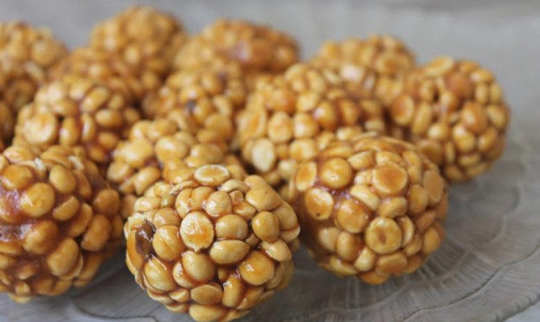 Pottukadalai urundai is a healthy snack with fried gram dal (also known as chutney dal or dhariya) and jaggery as main ingredients.